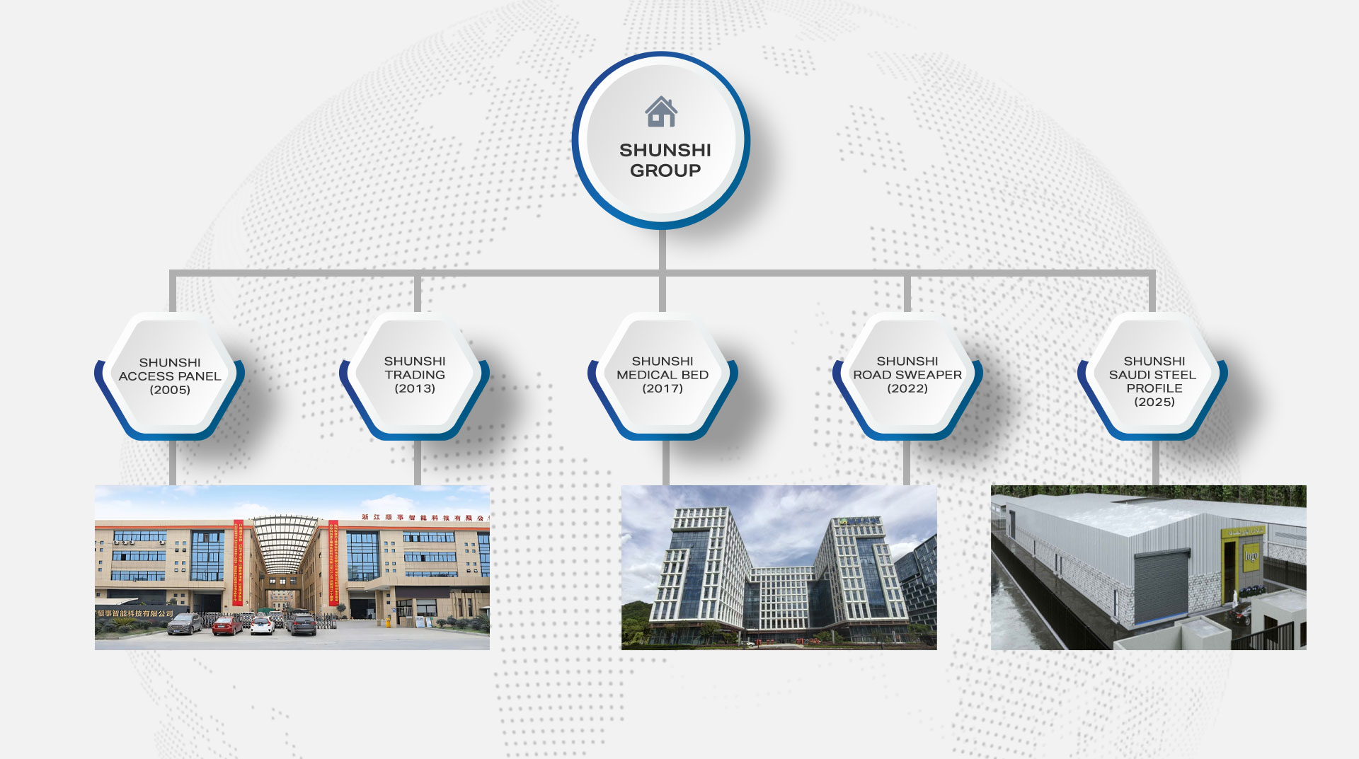 Công ty TNHH Công nghệ Thông minh Chiết Giang Shunshi, trước đây gọi là Công ty TNHH Máy móc Phần cứng Shunshi Hàng Châu, được thành lập vào năm 2005 và hiện có trụ sở tại 281 Đại lộ Mingzhu, Quận Deqing, Thành phố Hồ Châu. Công ty có diện tích khoảng 30.000 mét vuông. Chúng tôi chuyên sản xuất tất cả các loại bảng điều khiển truy cập cao cấp, lỗ thông hơi, bộ phận xử lý phần cứng, giường y tế và các sản phẩm khác, với 16 bằng sáng chế. Chúng tôi tuân thủ nghiêm ngặt các yêu cầu của hệ thống quản lý chất lượng ISO 9001. Tất cả các sản phẩm của chúng tôi được sản xuất với thiết bị tiên tiến và quy trình kiểm soát chất lượng nghiêm ngặt để đảm bảo chất lượng ổn định và giao hàng kịp thời.